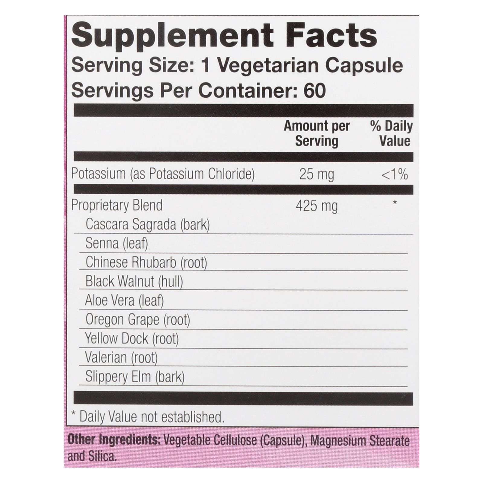 Natural balance colon clenz dietary supplement works gently to keep your body regular and help boost your energy. To promote natural elimination, we include herbs and plants in our unique blend, including slippery elm, valerian and aloe vera. Take one pill twice a day from this bottle of 60 vegcaps for a maximum of seven consecutive days.